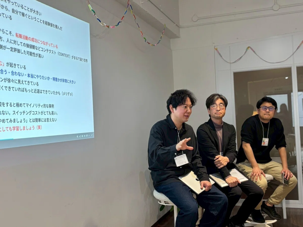 セッションでは、「給与から自ら稼ぐ」へのパラダイムシフトや、多様な挑戦を通じた自己理解の深め方など、越境のメカニズムについて深く掘り下げました。