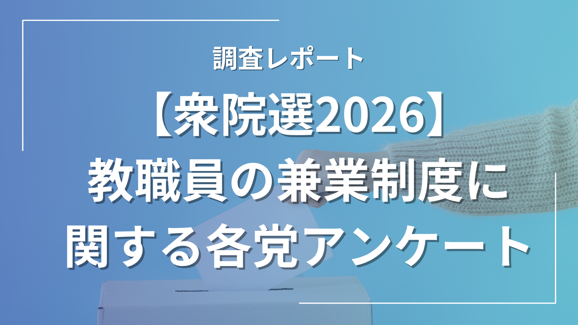 特定非営利活動法人越境先生(以下、当法人)は、2026年2月8日投開票の衆議院議員総選挙に向け、各政党に対し「教職員の兼業制度」に関するアンケートを実施いたしました。